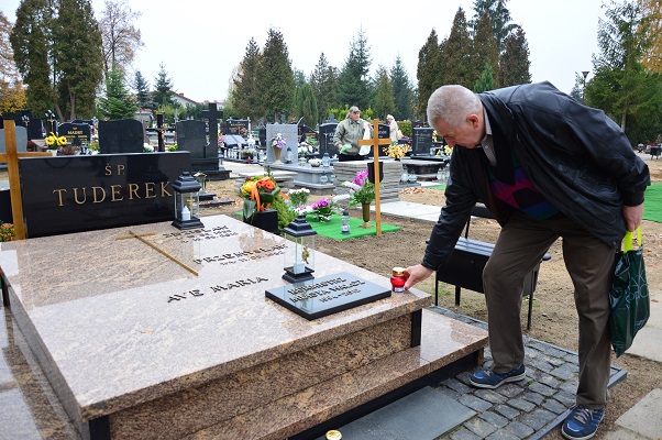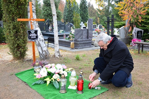 Na grobie Aleksandra Knapika znicz postawił Andrzej Wierzba. |