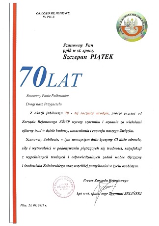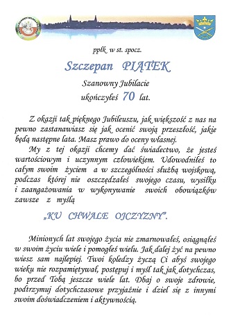 ppłk w st. spocz. Szczepana PIĄTKA, który obchodził 70-tą Rocznicę Urodzin