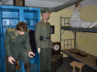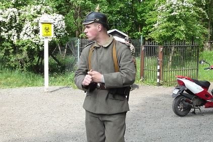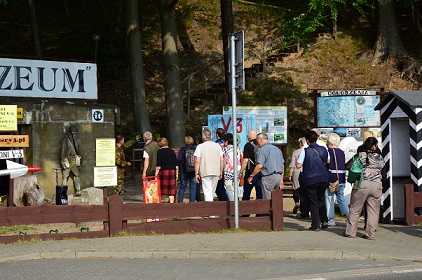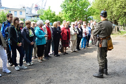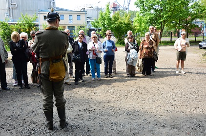 Przed Biurem Przepustek powitał nas przewodnik - żołnierz w umundurowaniu Piechoty Morskiej z lat 50-tych XX wieku rozpoczynając słowami: