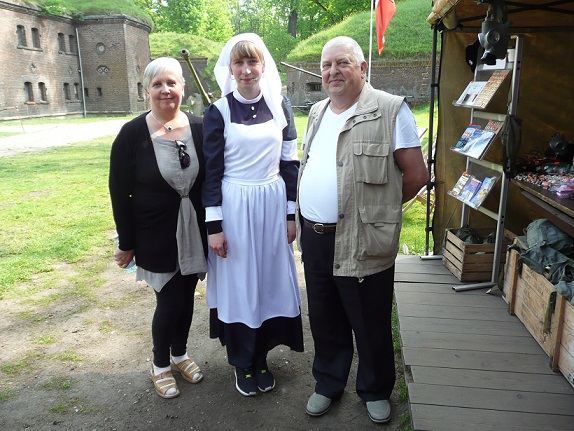 Na terenie Fortu znajduje sie punkt z pamiątkami, który obsługuje pani w stroju sanitariuszki pruskiej armii.