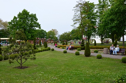 ławeczkami do wypoczynku w Parku Zdrojowym im. Fryderyka Chopina w