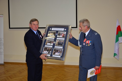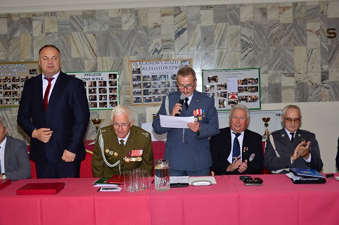 Na ręce Prezesa Zarządu Rejonowego ZŻWP mjr Zygmunta Jelińskiego złożył gratulacje wręczając pamiątkowy grawerton.