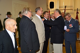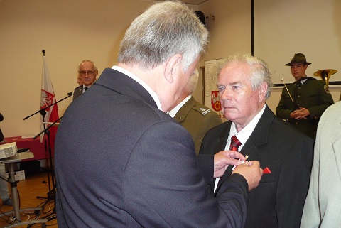 Srebrny Medal 35-lecia Związku Żołnierzy Wojska Polskiego odbiera Prezes Koła nr 10 im. Ziemi Wałeckiej płk w st. spocz. Witold Kowalski. |
