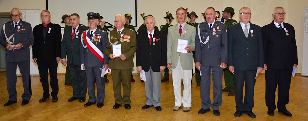 Wśród wyróżnionych Srebrnym Medalem 35-lecia Związku Żołnierzy Wojska Polskiego: Prezes Koła nr 10 im. Ziemi Wałeckiej płk w st. spocz. Witold Kowalski (6-ty od lewej). |