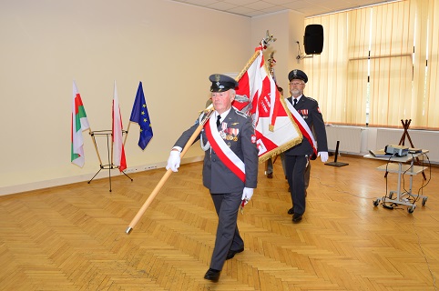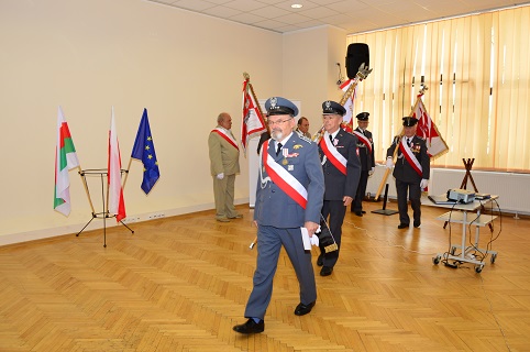 Po występie Sygnalistów Myśliwskich prowadzący uroczyste spotkanie Wiceprezes Zarządu Rejonowego ppłk w stanie spoczynku Józef Kaniecki wydał komendę do wyprowadzenia Pocztów Sztandarowych.